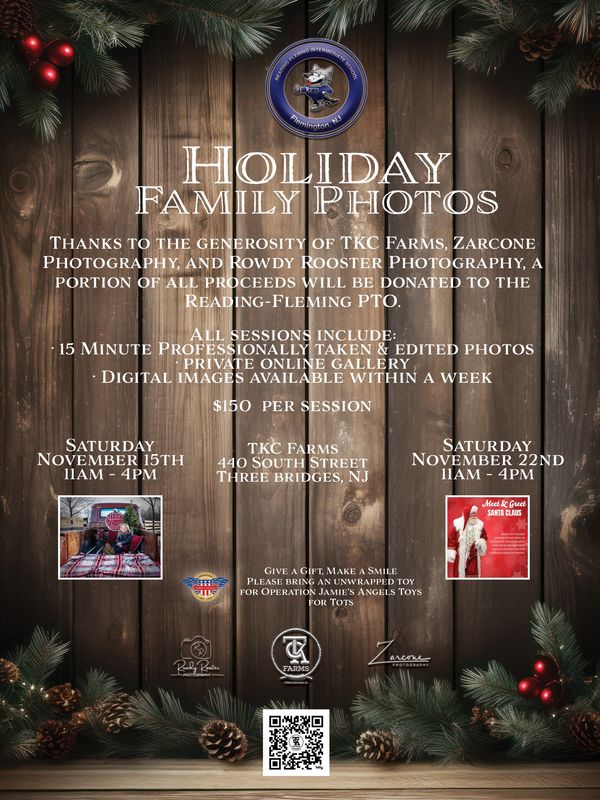Thanks to the generosity of TKC Farms, Zarcone Photography, and Rowdy Rooster Photography, a portion of all proceeds will be donated to Raritan-Fleming PTO